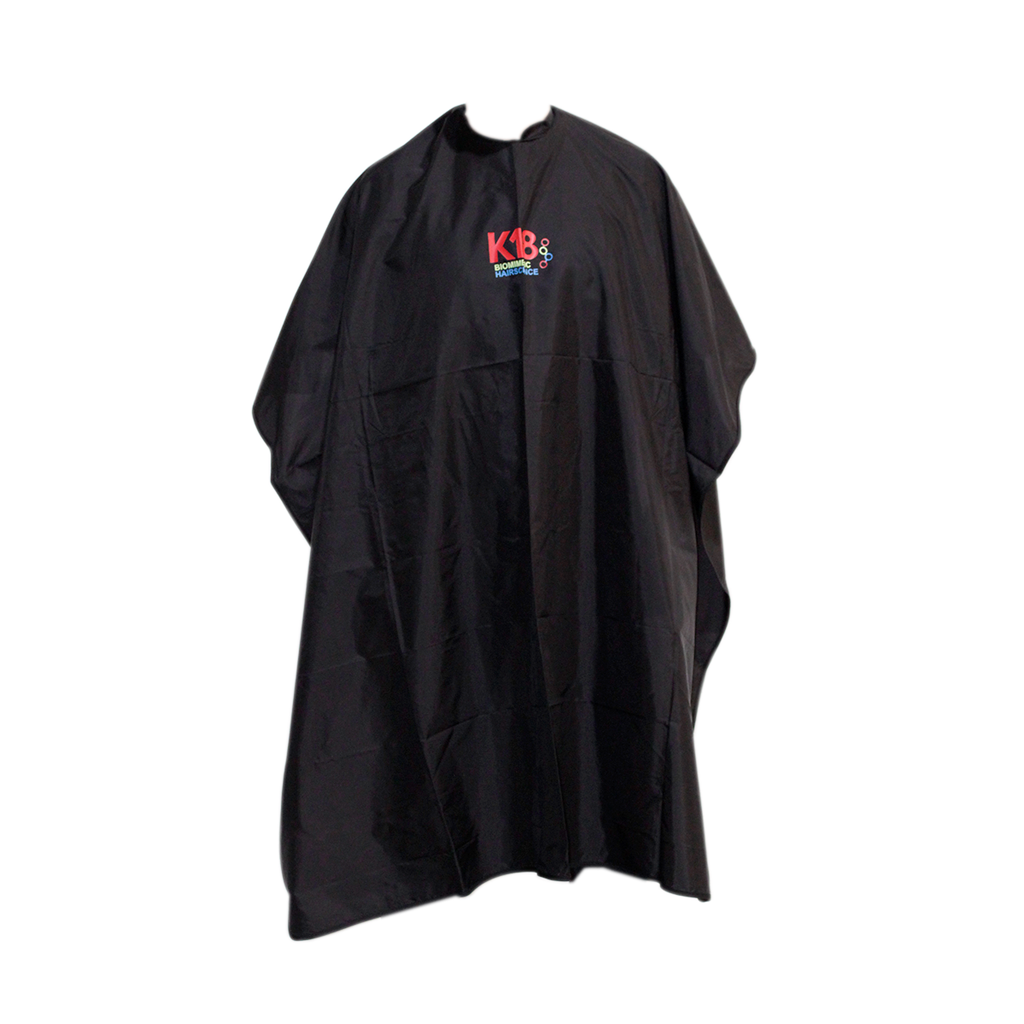 Cubridor para corte de cabello y servicios marca K18 para salones de belleza, estéticas o barberías , repelente al agua, no se mancha, duradera y ajustable con el tamaño del cuello mediante con broches a presión.