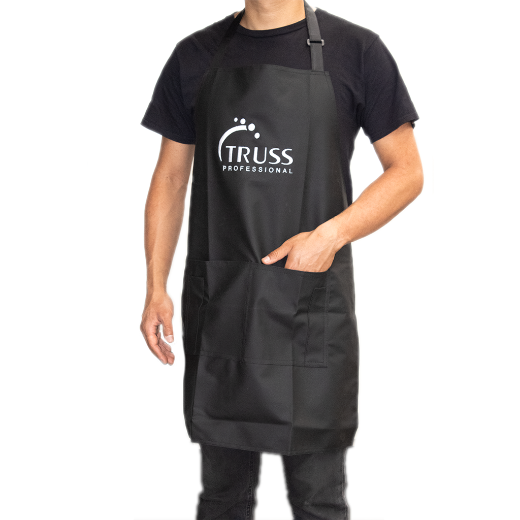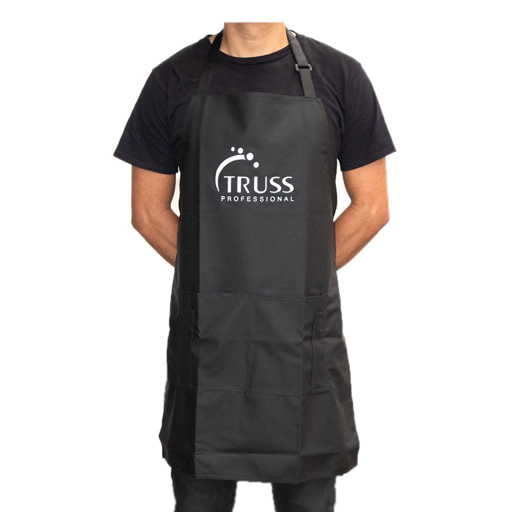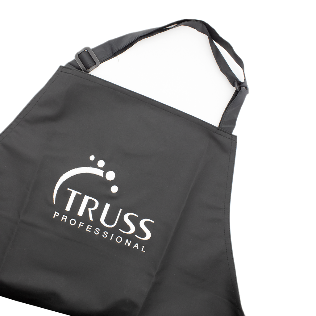 El Mandil TRUSS es un mandil profesional repelente al agua de color negro, diseñado para estilistas que desean llevar la marca TRUSS en su salón.